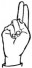 На ћирилици написано СЕРГЕЈ ЂУДУРОВИЋ састоји се из 15 слова [?]. Исписано ћириличном једноручном азбуком за глувонеме:
